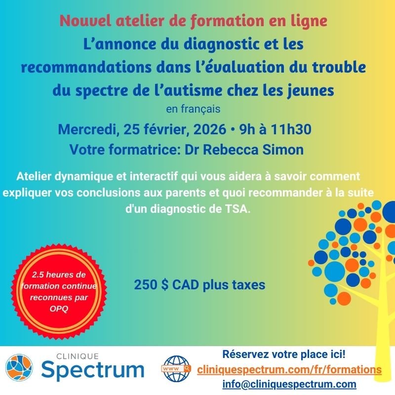 Clinique Spectrum se réserve le droit d’annuler toute conférence, formation ou événement en cas d’inscriptions insuffisantes.